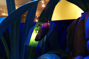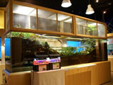 「ようこそゲンジボタルの世界へ」は、来館者がミクロサイズとなって、ホタルの目線でホタルの一生を体験しようとするコーナー、ジオラマがなかなかリアルに作られていて見応えがあったよ。「ホタル生態水槽」では、水槽内に陸域・水域を設置し、ゲンジボタルとヘイケボタルが育つのに必要な環境を再現しているよ。ものすごく小さすぎてアイはなかなか見つけられなかったけど、その時季のホタルの姿が見られるよ。ホタルが生息しやすい環境は、水がきれいで、流れがあり、砂、礫、護岸に植物が覆われていることと適度な暗さが必要なんだって!