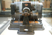 三居沢電気百年館の1階は、「電気百年ギャラリー」だよ。明治21年(1888)のアーク灯の点灯から現在に至るまでの三居沢発電所百年の歩みの紹介や、昔懐かしい各種家庭電気器具の展示を中心とする電気と暮らしの歴史、東北で初めて電気をつくった発電機などが展示されていたよ。