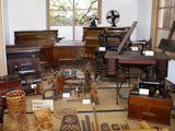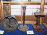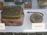 国選択無形民俗文化財「近江八幡の火まつり」などの祭りの資料や、地場産業である数珠玉(じゅずだま)や和ろうそくの生産工程器具、椿実搗き・椿油しぼり機など各種産業に使用された用具や道具、美術工芸品、考古資料などが展示されていたよ。