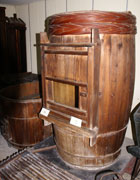 裏庭には、水郷地帯の農民の生活をしのぶ農具や民具が展示されていたのだけど、アイの一番のオススメは、なんといっても木製の蒸し風呂!きっと一家の主が専用で使っていたんじゃないのかなぁ?