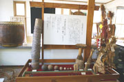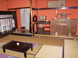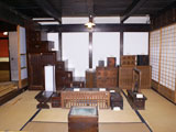 歴史民俗資料館は、郷土資料館に隣接した江戸時代末期に建てられた商家をそのまま利用した資料館だよ。近江商人の生活様式や帳場風景が再現されていて、実際の商いに使用した算盤、金銀請払帳、奉公人手形、集金袋、銭枡などの道具類や大福帳、家訓である「家業一枚起請文」が展示されていて商人の資料館として見ごたえがあったよ。