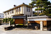 旧西川家住宅は、江戸時代、「大文字屋」の屋号で畳表や蚊帳を扱っていた豪商西川利右衛門の旧宅だよ。壁を黒く塗ってトガ材を使用した京風建築の二階建て家屋だけど、実際に入ってみると見た目よりも奥行きが深く、間取りや庭の重厚なたたずまいに、往時の近江商人の隆盛ぶりを肌で感じとれることができるよ。展示品の中でアイのイチオシは車長持!長持の下部に車輪を付けて、火事の際に長持ごとひいて運びだされるという便利品だよ!