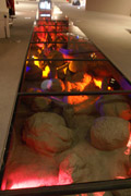 実際に火砕流によってなぎ倒された木々と火山堆積物を床下40メートルにわたって展示し、時速100キロメートルで走るといわれる火砕流の速さを赤い光で体感する「火砕流の道」なの。