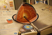 「世界の中の雲仙岳」は、世界のさまざまな火山やクレーターを見て、触って、あるいは火山のぞき百科で世界の代表的な火山を覗いて見ることができるし、大きな地球儀についているボタンを押すと、世界の代表的火山の映像が見られて、火山の違いがよくわかるよ。