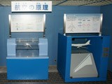 1階は、実物の2人乗りグライダーやセスナ402型のエンジンなどが展示されている航空コーナーと、企画展示としてアマチュア無線機と真空管ラジオのコーナー。航空コーナーでは、航空の歩みが紹介されているとともに、「飛行機に働く力」、「空気の流れ」、「機体を浮かす翼」などの航空の原理を、模型を動かしながら楽しんで学べるの。ビデオ上映されていた「ナーノの冒険」は、「ナノメートル」のイメージキャラクター「ナーノ」が、1mの10億分の1のnm(ナノメートル)という小さな世界にしか現れない様々な性質を利用してITやバイオの世界でどんなことができるのかを紹介するアニメ!アイはすっかりナノテクノロジー通になったよ。(笑)