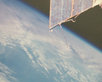 「ミール」はロシア語で“平和”という意味で、最大直径4.15m、全長13.13m。「クバント」はロシア語で「量子」という意味で、「ミール」と同じ直径で全長は5.8m。高度約400kmのところで活動し、時速約28000km、90分で地球を1周し、通常は3名、最大で6名の宇宙飛行士が長期滞在したそうだよ。日本からは、1990年12月にTBSテレビの秋山豊寛さんが一般人でなおかつ日本人初の宇宙飛行士として8日間滞在し、宇宙からのテレビ生中継をしたのも、この「ミール」だよ。1996年には、アメリカのスペースシャトルとのドッキングに成功し、宇宙における国際協力への時代となるきっかけをつくったのは、まだ記憶に新しいところだよね。