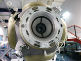 「ミール」の内部はアイには狭く感じられたよ。円筒形の本体にスクエアの空間を配置しているから仕方が無いのかな・・・。でも宇宙では空間すべてが使えるうえに、前方が開けているから、宇宙飛行士には意外と快適な住空間に感じられたんだって。不思議~!ロシア人宇宙飛行士セルゲイ・アウデエフ氏が、なんと、延べ3回748日も「ミール」に滞在したそうですがアイには無理だなぁ。地上にいながら、「ミール」を訪れ宇宙での生活ぶりを学べるのは本当に素晴らしいこと、見学者の中から将来の宇宙飛行士が誕生することをアイは楽しみにしています。