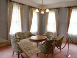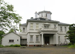 本館は、2階建て天然スレート葺きで、建築面積492平方メートル、延面積927平方メートル、高さは約18メートル。玄関を入ると中央廊下で仕切られていて、南側には1階に食堂、客間、撞球室、2階に西客室、御居間、御座所、御寝室といった主要な部屋、北側に付属室、調理室、浴室といった小室が配置されているの。