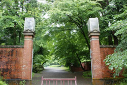 「天鏡閣」は、猪苗代湖の長浜からゆるい上り坂を上がった高台に立つ洋館で、磐梯山と猪苗代湖を目前にひかえる絶好のロケーションにあるの。白亜の壁と八角形の塔屋がとても目を引くよ。表門は煉瓦造りの柱門で、両開きの鉄柵扉を吊っていて、門灯のガラスグローブと煉瓦は、鬱蒼とした緑の樹木にマッチしていて素敵だったよ〜。明治40年(1907)、有栖川宮威仁(ありすがわのみやたけひと)親王が明治天皇の代巡として東北地方を巡旅された際、猪苗代湖畔のこの地の景色の優美さを賞美し、翌41年(1908)に別邸として建設されました。