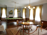 特に関心を抱いたのは、撞球室の玉突台の上に吊るされた玉突台専用の照明器具!4個の電球で台上を均一に照明し、ゲーム中に球の影が出来ないようにしたそうだよ。当時の照明器具はすでになく、新たに複製したそうだけど、まだまだ一般の庶民がろうそくや石油ランプを使用していた時代にそこまで気を配って照明器具を製作していたなんて本当に凄いよね!明治時代の皇族の気品ある華やかさを実感します。アイもこんな素敵なところに住めたらいいのになぁ〜。