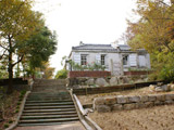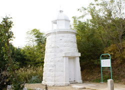大久野島は広島県竹原市の沖合に浮かぶ周囲4kmの小さな島、旧大久野島燈台は、明治27年(1894)5月15日に初点灯した石造燈台を移築。光源は当初は石油で、大正14年(1925)からアセチレンガスが使われ、昭和11年(1936)からは電灯へと変遷していきました。燈台と並ぶように、燈台に勤務していた職員、燈台守の宿舎であった「燈台退息所」が3棟並んで展示。最初にあるのが、明治4年(1871)、「日本の燈台の父」と呼ばれているイギリス人技師R.H.ブラントンの設計・監督による、淡路島にあった洋風で石造りの重厚な建物「旧江埼燈台退息所」。中央が、同じくR.H.ブラントンの設計・監督で正面の円柱列が印象的な、香川県坂出市の沖合、鍋島にあった「旧鍋島燈台退息所」、明治6年(1873)に竣工されたそうだよ。さらにその隣が、明治36年(1903)建設のレンガ造の愛媛県松山市の沖合クダコ水道から移築した「旧クダコ島燈台退息所」。民家が点在していたエリアとは雰囲気が一変して、花もたくさん植えられているし洋風なガーデンといった様相。四国村の中では一番の高台にあるから見晴らしもよく、一休みするのには最適なところだよ。