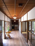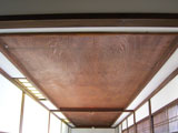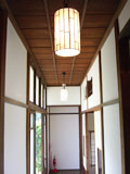 旧宅の隣にある別邸は、博文が晩年のとき、明治40年(1907)に東京大井町に建てられたものを萩に移築。東京にあったときは、広大なものだったそうですが、往事の面影をよく残す玄関、大広間、離れ座敷の3棟を復元しています。厚さ5cm、幅2m、長さ10m、奈良の樹齢1000年の吉野杉の一枚板を使った切れ目がない大広間の鏡天井、離れ座敷の節天井、和風のシャンデリアなどぜいたくな内装が印象的!!江戸時代に下級武士である中間の身分の子どもであった博文が、明治時代に初代の総理大臣までに昇りつめた立身出世物語を、隣り合う旧宅と別邸は語っているようです。