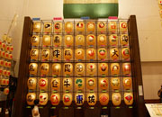 館内は竿燈のほかにも、展示ホールでは土崎港曳山まつりの置山車や太平山三吉神社のぼんでん祭りのぼんでんを展示。竿燈まつりが秋田の夏を彩る行事なら、ぼんでん祭りは 1月17日に行なれる厳寒の冬の秋田を熱くする勇壮な行事。ぼんでんは大きな御幣(ごへい)で神様の依代(よりしろ)や奉納物の役目をするの。長さ3mほどの竹に円筒状の竹かごを取付け、それに色鮮やかな布や紙を貼り、頭部に太い布鉢巻きを巻いて当日の朝に数十組のはんてん姿の青年たちが各々のぼんでんを奉じて神社を目指すそうだよ。