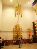 館員さんの説明を受けてアイもためしに小若に挑戦。「うーん・・・重たいよぉ。バランスがまったく取れないよぉ」せめて平手くらいは何とかなるかなぁと思っていましたが大失敗(涙)。小若は、小学校高学年ぐらいが上げるものと書かれていましたが信じられません。大若をかつぐ差し手のすごさを改めて実感です。竿燈は夜の行事であり、その提灯に灯る蝋燭の明かりは優雅にして華麗な灯火の美を夏の夜空に描きます。