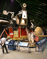 アポロ司令船とドッキングしていたのが「アポロ月面着陸船」。司令船からは2名が月面着陸船に乗り込んで着陸し月面活動を行ない、1名は司令船に残って軌道上で待機したそうだよ。レプリカとはいえ、実際のサイズで作られているので近くから見るとその大きさに改めてびっくり!