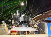 「バイキング火星着陸船」は、1975年から2回に渡って火星に送られて火星の生物の存在の可能性を調査した生命探査機。展示されているものは火星表面に降り立ったランダーと呼ばれるもの。「ルナ24号月面着陸船」は旧ソ連のルナ(月)計画のために作られた無人の月探査船。ルナ計画はアポロ計画に対抗して行なわれ、着陸船の一番上にある茶色の球状のカプセル部のみが着陸した付近の土壌を採取し地球に帰還したそうです。