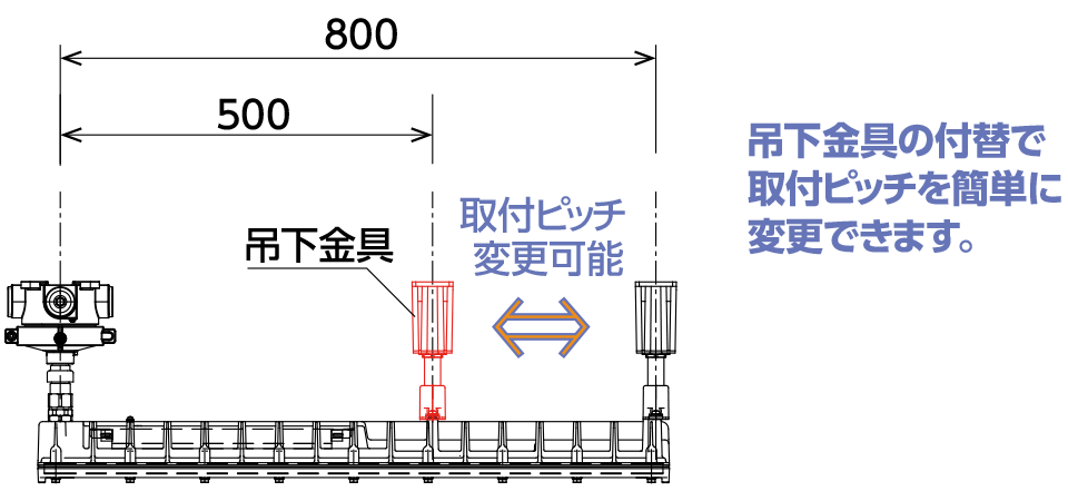 500mm・800mm、2つの取付ピッチに対応!(直付形、パイプ吊形、ブラケット形のみ)