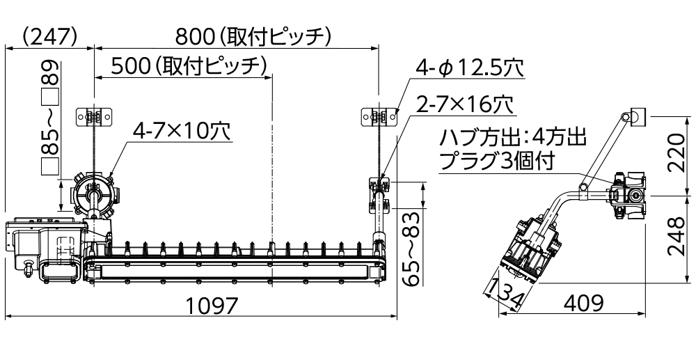 ※取付ピッチは800mmと500mmどちらでも設置できます(特殊直付形・スタンド形を除く)。