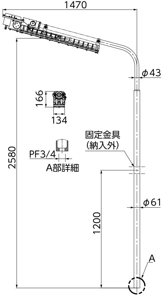 | 質量 | 直付形:15.0kg パイプ吊形:16.0kg 30°ブラケット形:16.3kg 特殊直付形:14.0kg スタンド形:14.2kg |