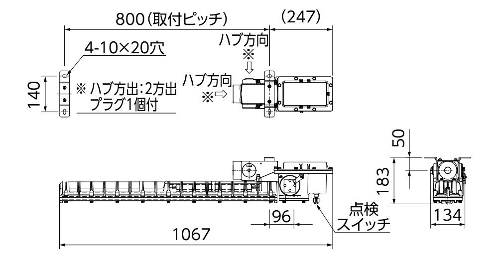 | 位置ボックス | アルミダイカスト(4方出・プラグ3個付)(直付形・パイプ吊形・30°ブラケット形) |