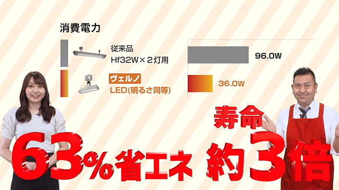 さらに約63%も省エネ!LEDだからなんと寿命は約3倍!