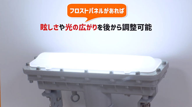さらに今回はオプションとして後付けできるフロストパネルをご用意しています。 これがあれば眩しさや光の広がりを後から調整できるんです。