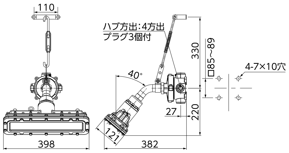 | 位置ボックス | アルミダイカスト(4方出・プラグ3個付)(直付形・パイプ吊形・40°ブラケット形) |