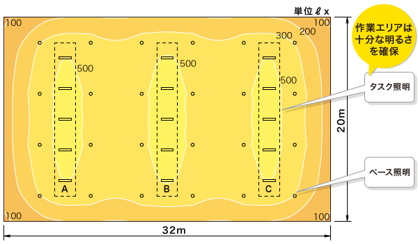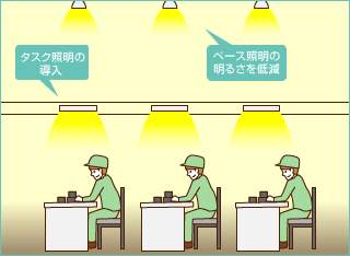 ベース照明だけでなく、タスク照明を組合せることによって、お手軽に省エネルギー化が実現できます。