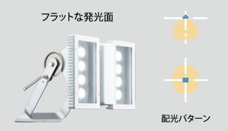 フラットな発光面のタイプFと左右に広がる光のタイプVに、それぞれ狭角・中角・広角配光をラインアップ。
