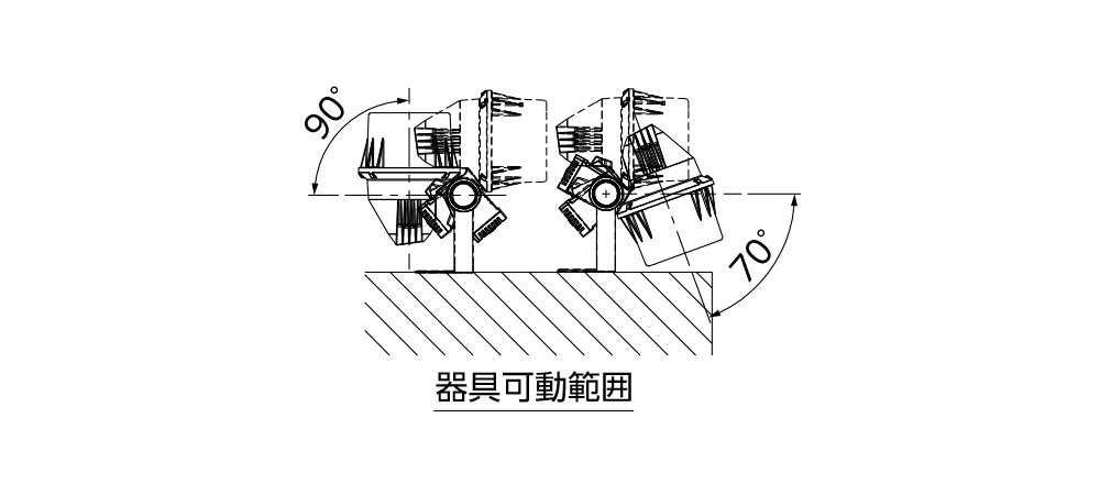 - ※器具を建造物に取付ける際は、被照射面との距離を10cm以上離して設置してください。器具の本体や放熱フィンが構造物に触れないよう設置してください。
