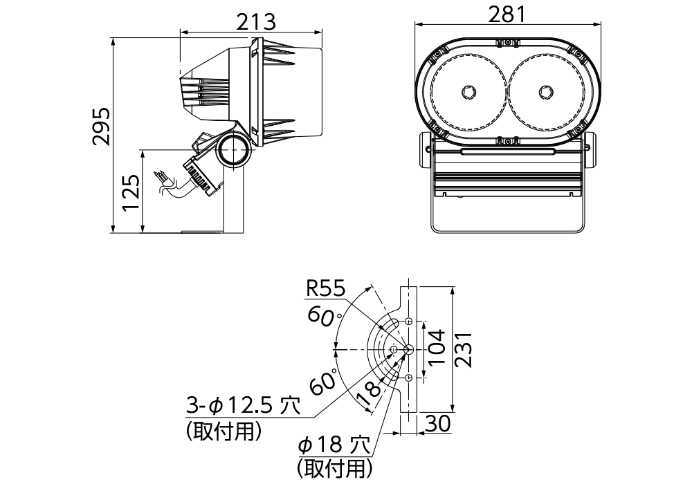 | 反射鏡 | ポリカーボネート(狭角・中角タイプ:内面鏡面処理、広角タイプ:白色塗装) |