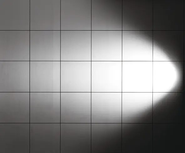 一般的なLED投光器の照明イメージ。基準面を効率よく照らす。