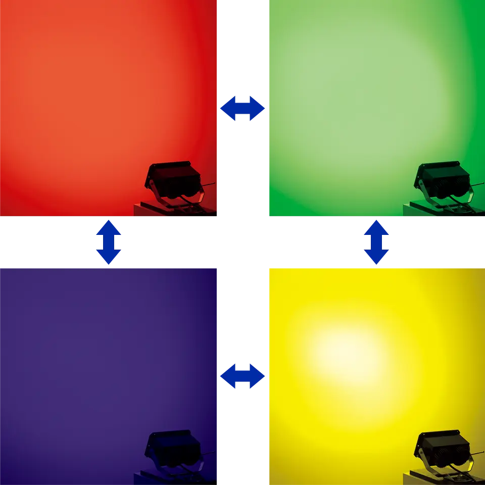 フルカラータイプと同じきょう体にすることで、演出照明の統一化を図り、単色や調色での演出も可能となります。