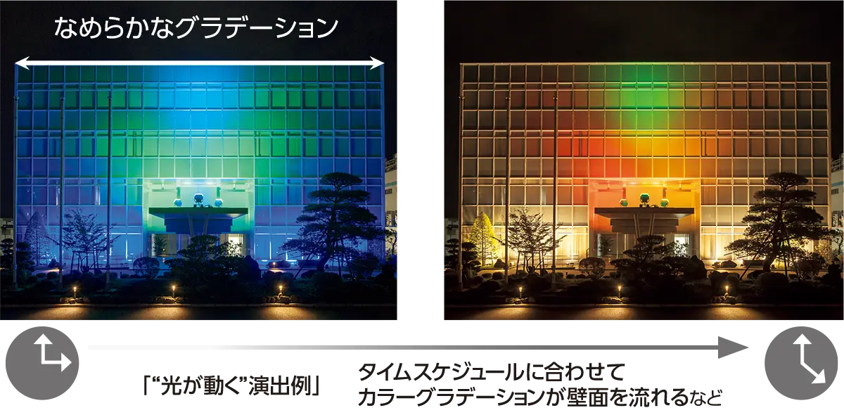 また、複数台を一括制御することで“光が動く”演出を行うことができます。