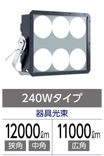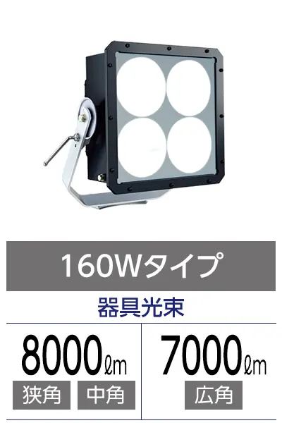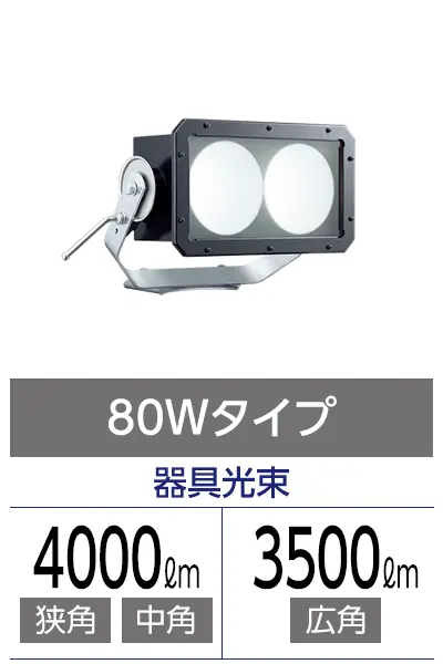 5タイプの明るさ、狭角・中角・広角の3タイプの配光をラインアップ。豊富なバリエーションにより、照射物や周囲の明るさなどシーンに最適な器具を選定できます。
