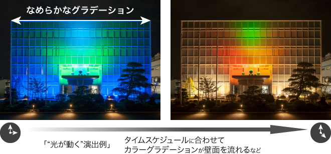 また、複数台を一括制御することで“光が動く”演出を行うことができます。