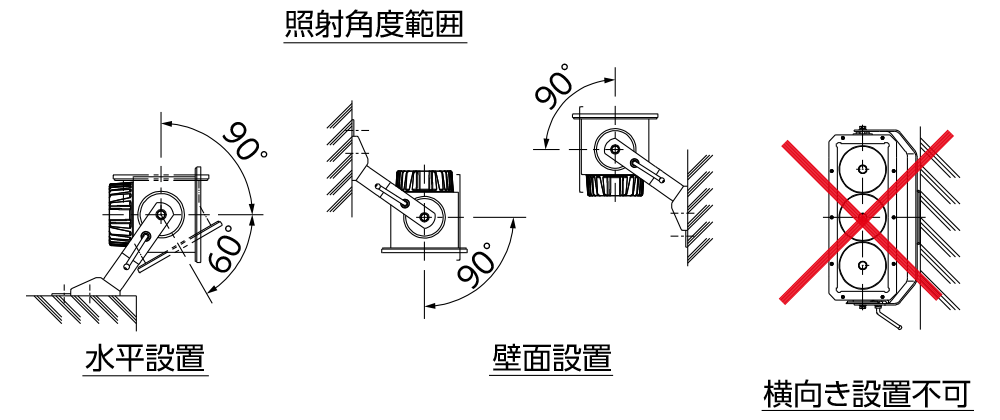 | 配光 | 狭角 | 中角 | 広角 | 狭角 | 中角 | 広角 | 狭角 | 中角 | 広角 | 狭角 | 中角 | 広角 | 狭角 | 中角 | 広角 | |