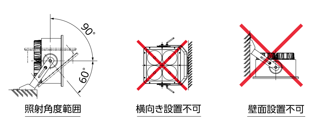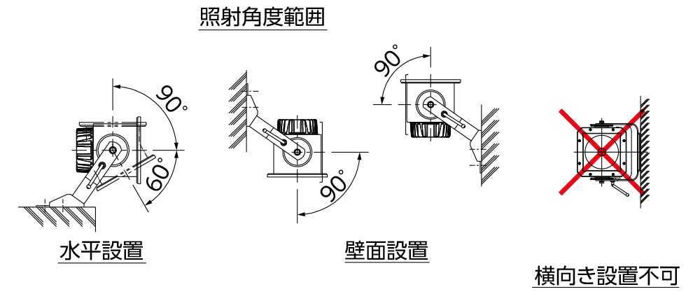 - ※屋外露出で使用可(ケーブルを下向きに取付けてください)