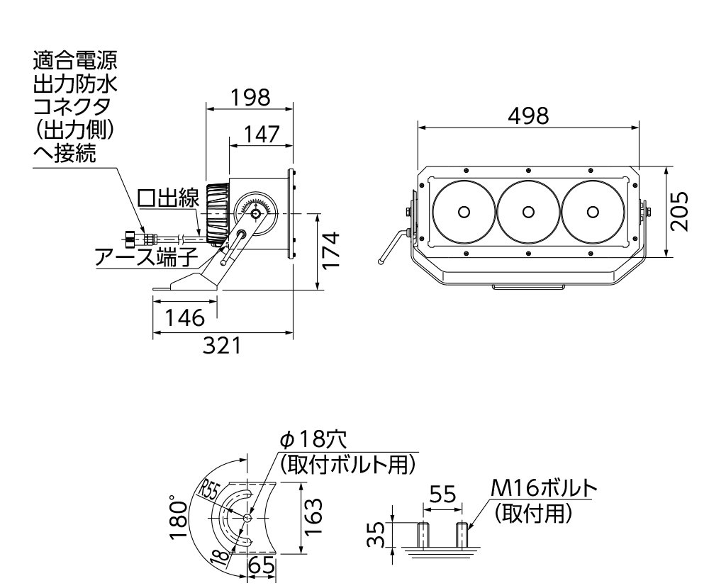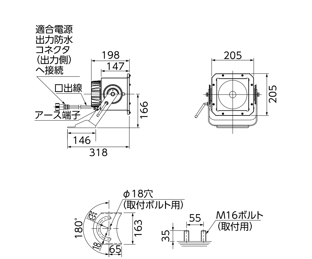 | 口出線 | キャブタイヤケーブル(器具外2000mm)(240W・160Wのみ2本) |