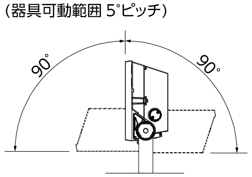 - ※本体取付方向制限はありません(エニーポジション構造)が、設置条件により上のように、構造物と干渉します。