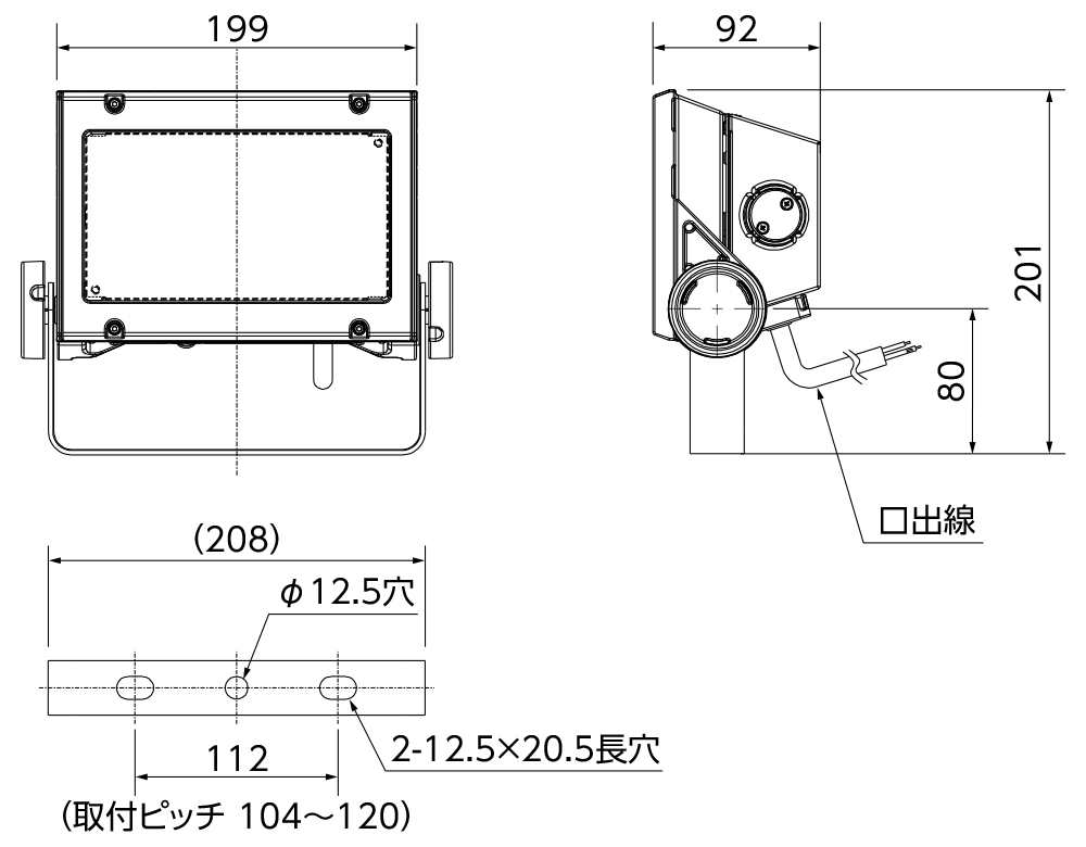 | 電源用口出線 | キャブタイヤケーブル(器具外1500mm) |