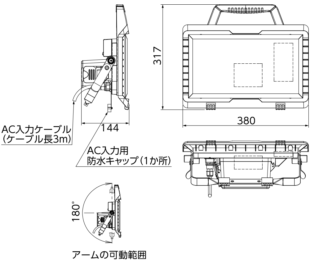 - ※本品は移動灯器具です。工事などを行って定着灯器具として使用することはできません。
