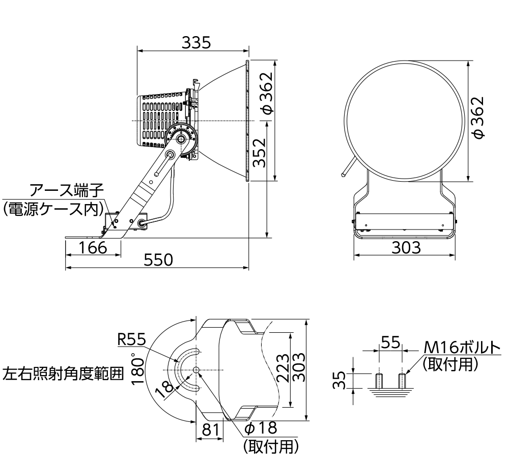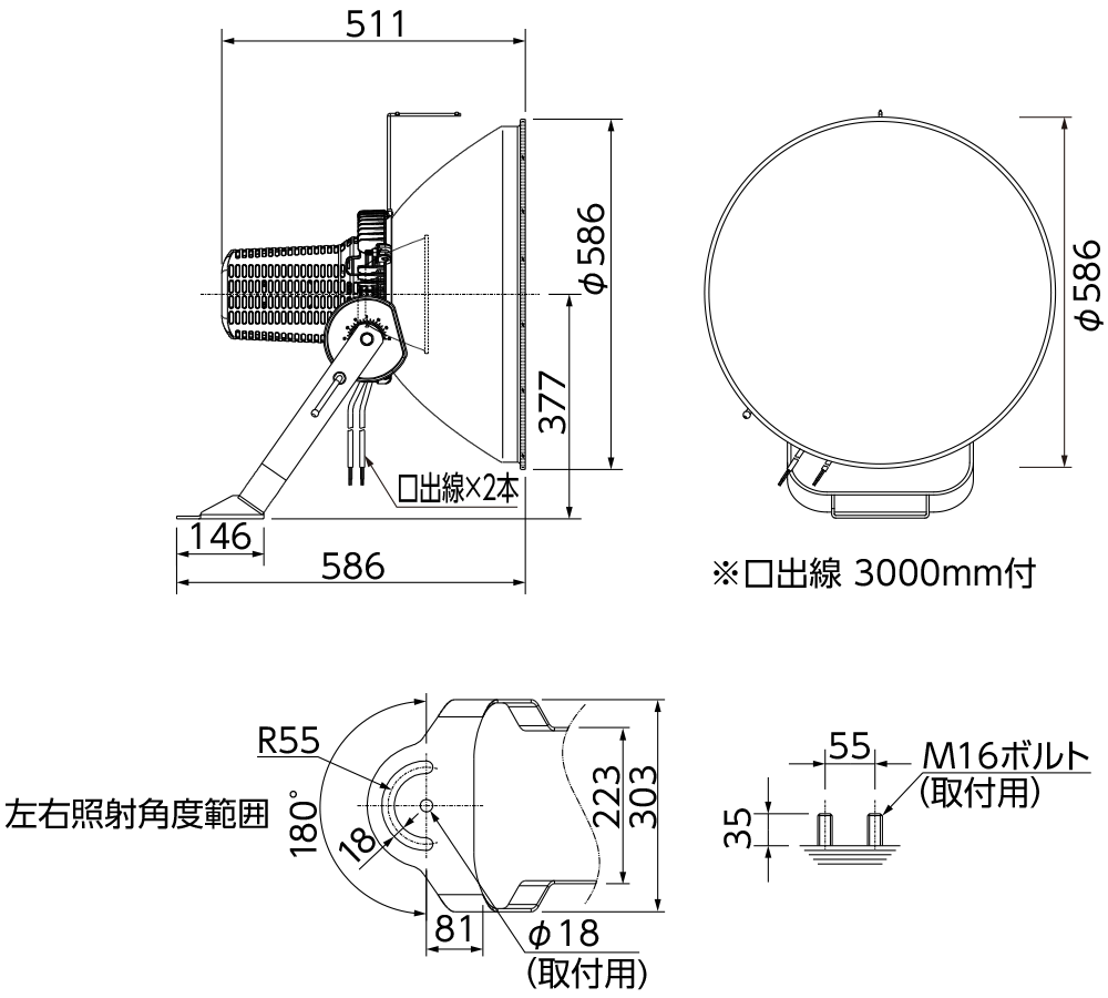 | 仕上 | さび止め塗装 4-M16 器具取付用ボルト、ピッチ55mm |
