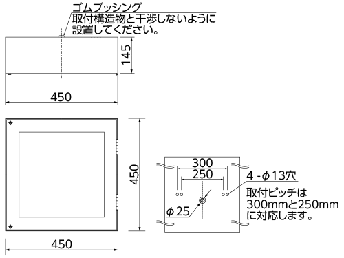 - ※腐食性ガスの発生する場所、油類・薬品などが付着する場所、塩害地域では使用しないでください。
