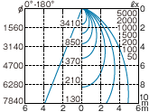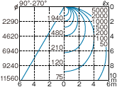 - ※上記の水平面照度分布図は初期値を示す。(単位:ℓx)