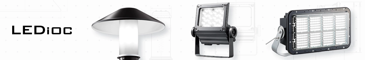 LED道路灯や街路灯、投光器といった屋外用LED照明器具から、LED高天井灯やベースライト、防爆形をも網羅する屋内用LED照明器具、さまざまな既設の照明器具に適合するLEDランプなど、幅広いラインアップを揃える、岩崎電気のLED照明器具「LEDioc(レディオック)」。