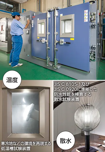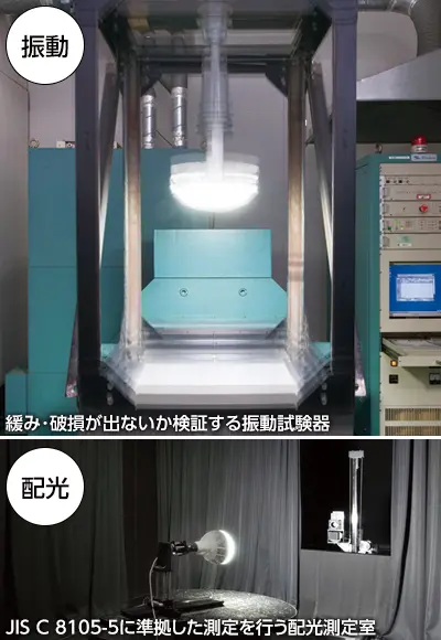 この他、耐湿試験、高調波・電磁波試験など20~30項目の検査に合格して初めて、照明(あかり)をお客さまにお届けしています。
