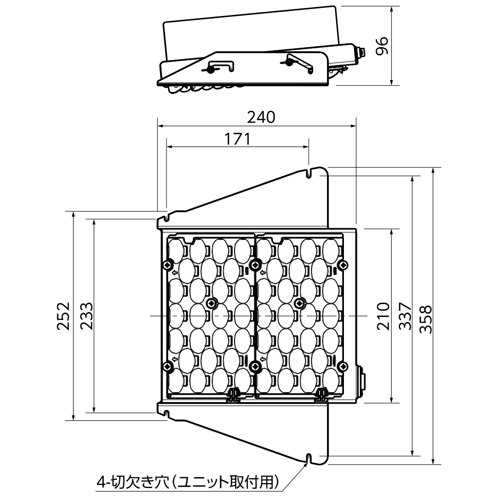 | 明るさ相当 | 水銀ランプ250W(高圧ナトリウムランプ110W)相当 | 水銀ランプ300W(高圧ナトリウムランプ180W)相当 | 水銀ランプ400W(高圧ナトリウムランプ220W)相当 |