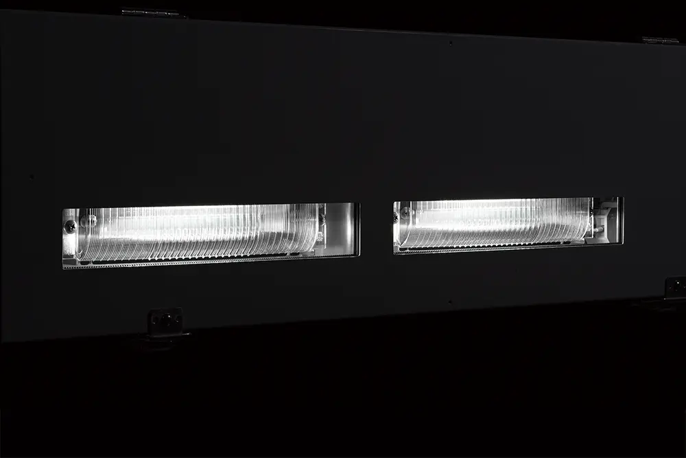 運転者の目線に入る水平ラインの光を高次元の配光制御によりカットし、運転者への不快なまぶしさを抑制。グローブのほのかな輝きが誘導効果を高めます。