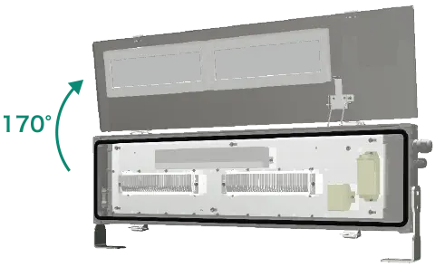 前面枠に開閉保持機能を新たに採用。前面枠を開いたまま固定し、両手で作業をすることが可能なため、結線作業やメンテナンス作業を簡単に行えます。